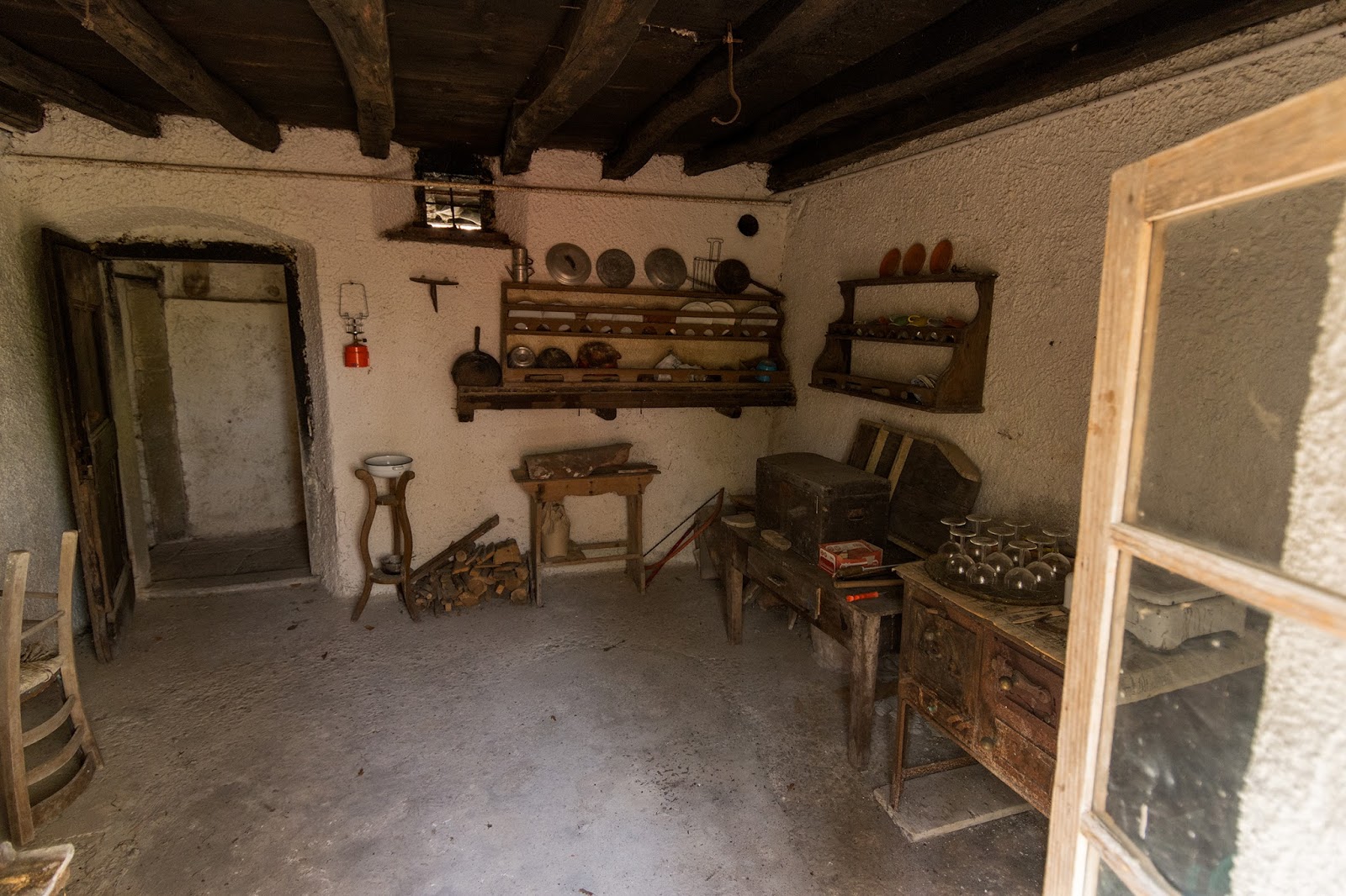 Alle spalle, affaccianta sul monte appare la chiesetta del Santuario del Monte Castellano, nostra prossima meta. Attraversiamo il grazioso paese di Raveo per affrontare la ripida lastricata salita che, dopo aver superato una panoramica radura riprende a salire fino al ripiano dove sorge il Santuario della Madonna di Monte Castellano. La piccola chiesa è graziosa, ma purtroppo è chiusa, ma quello che invoglia ad una lunga sosta è la presenza del vecchio fabbricato dell'eremo del Monte Castellano.